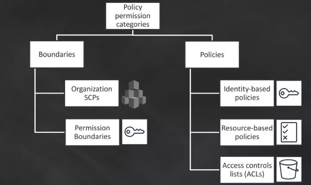 e.g. 유저가 속한 그룹에 S3 권한이 할당되어 있어도 유저에 S3 권한 경계가 설정되어 있으면 S3에 권한에 제한을 받는다.