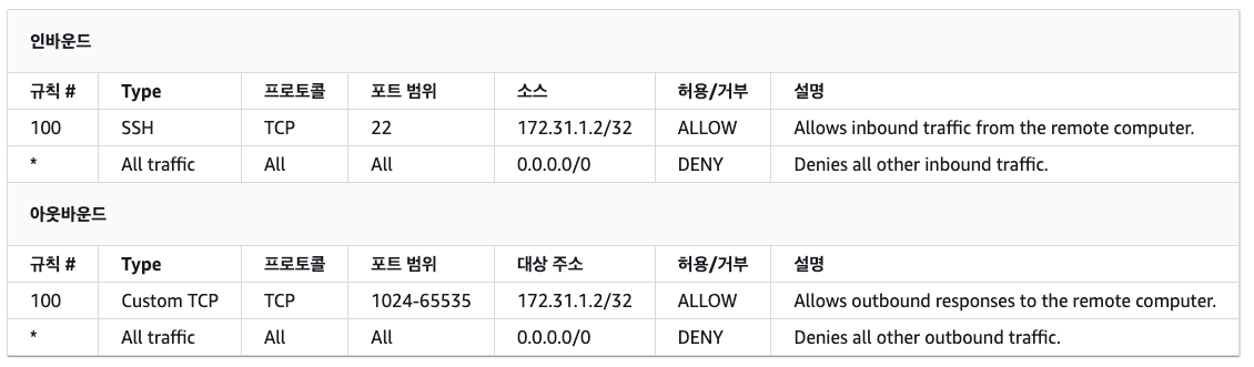 https://docs.aws.amazon.com/ko_kr/vpc/latest/userguide/vpc-network-acls.html